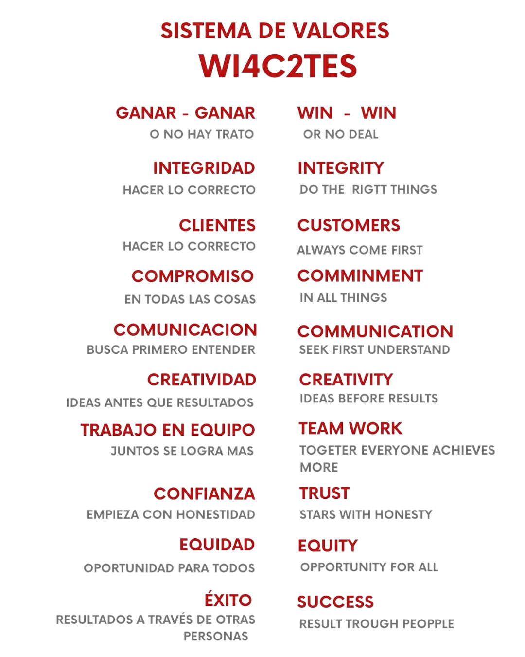 Los principios WI4C2TES son la brújula ética de Keller Williams. Cada letra representa un valor que define cómo interactuamos con nuestros clientes, compañeros y la comunidad.